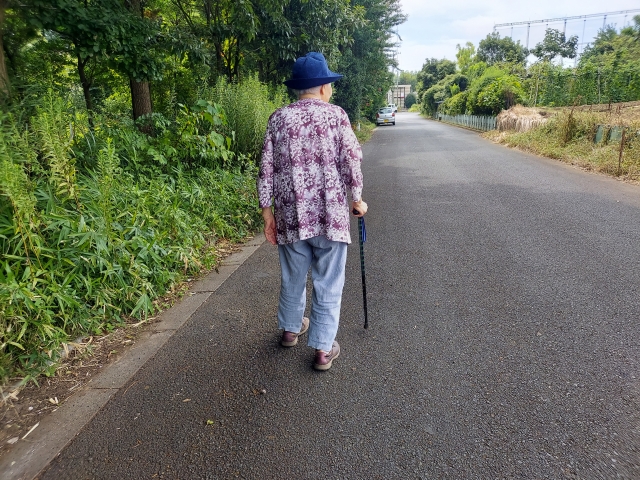 杖に頼ると、良い方の足がサボり始めます。重心を動かすエネルギーは、手(杖)ではなく「良い足のふくらはぎ」で作ってください。